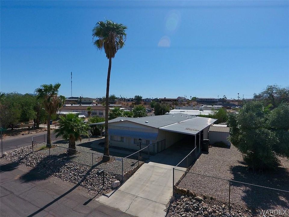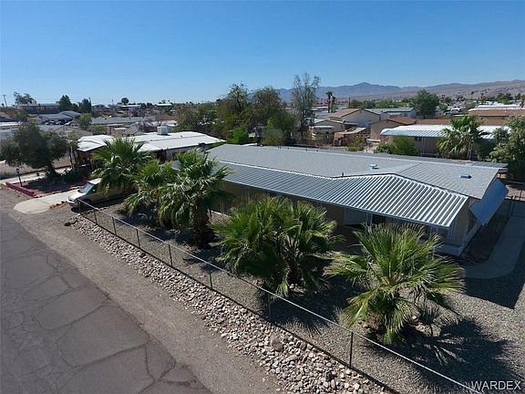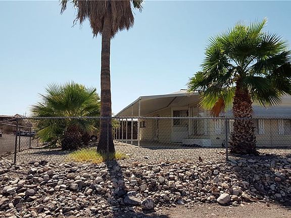 Doublewide with two bedrooms with two baths. Move in ready. Some of the features are dual master bedrooms, tile floors, and large living room with a fireplace, formal dining area and family room. Washer, Dryer & Refrig included. All on a large fully fenced corner lot plus tasteful landscape with mature Palm trees. Covered carport as well as room for RV, motorhome, pontoon boat or whatever else your need parking for. Three separate sheds for additional storage. Located close to the Colorado River in Holiday Shores area. Come see all the space inside and out.