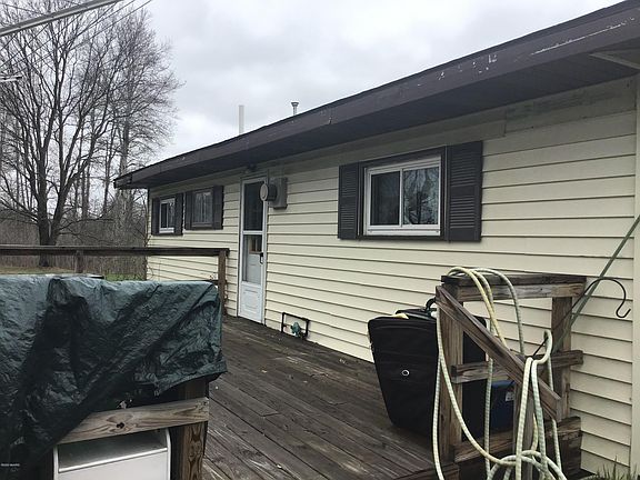Walk in the front door to an open concept,living room, kitchen and dining room. Down the hallway you will find a nice size bath on your left, along with a nice size laundry room/utility room with some good storage. On the right side of the hallway are 2 good size bedrooms. The dining room slider opens up to a good size newer deck looking out into the back yard. There is a 2 stall pole barn with a cement floor and power along with an attached shed for all of your garden tools. Many updates, Newer windows, flooring, stove hood and deck 2015. Wall furnace 2014. Newer roof 2012 . Newer Wall AC 2010. Please Do Not Walk around the property without prior authorization from the listing agent. NO FHA, RD or VA