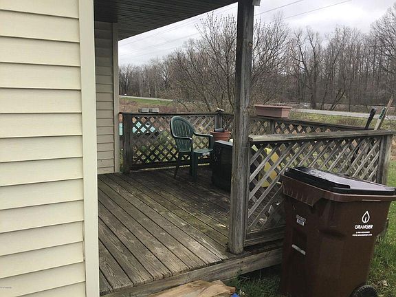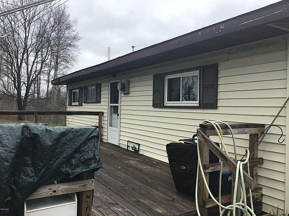 Walk in the front door to an open concept,living room, kitchen and dining room. Down the hallway you will find a nice size bath on your left, along with a nice size laundry room/utility room with some good storage. On the right side of the hallway are 2 good size bedrooms. The dining room slider opens up to a good size newer deck looking out into the back yard. There is a 2 stall pole barn with a cement floor and power along with an attached shed for all of your garden tools. Many updates, Newer windows, flooring, stove hood and deck 2015. Wall furnace 2014. Newer roof 2012 . Newer Wall AC 2010. Minimal work needed, call for more information.