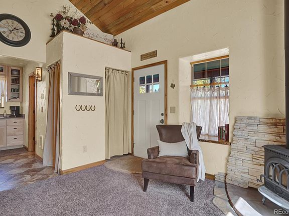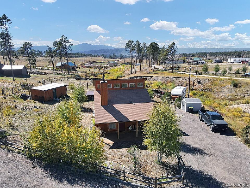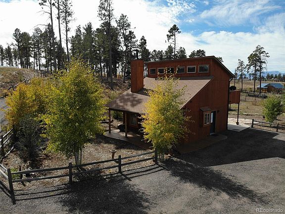 Everything you ever need, still with room to grow! This sweet retreat is nestled along The Ravine in Black Forest, with a perfect view of Pikes Peak and the Front Range, sits this absolutely adorable 2013 home with 2 large patios, a large deck, 2 bedrooms, a Loft, and all the cozy warm nights by your cabin stove. The bathroom has radiant floor heat and a large soaking tub/shower combo to soak after your time in the barn caring for your animals. The barn has a single stall plus storage/tack room. Meticulous detail in creating this precious cabin. Cedar siding. Timber supports. Stamped concrete. Bring your horses, goats, and chickens to .6 acres of no HOA land. The lot feels much more expansive as it adjoins ravine land that is shared and used by all those who abut the ravine. RV parking in 2 locations already set up, to include a dump station directly into the septic system and electric hookups as well. The current trailer is included in the sale along with enough firewood to last a lifetime. Peace and Quiet just minutes from town. This home must be seen to truly feel the love and joy that comes with cabin living in Black Forest.