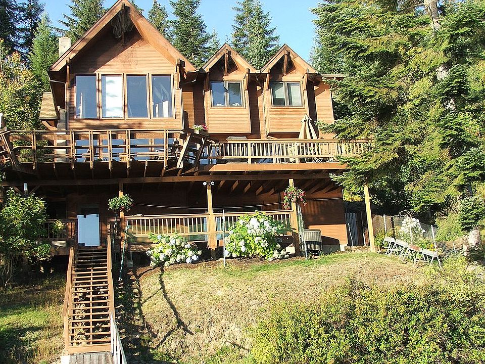 Hayden Lake, Rockway Beach, 68' frontage, 3 bdrms, 2.5 baths, year round home, 2500 sq ft, 1300 sq ft deck areas, boat dock, 3 car detached garage 25' x 35' plus 12' x 25' street building storage/garage, close to town. Custom made solid oak cabinets & trim, laundry shoot, oak flooring, main level walk-in pantry, Hurd windows & sliders, Jenn-Air cooktop (ceramic panels), trash compactor, new dishwasher (2018), new built in microwave/convection oven (2019), Septic & Drainfield (on lot), 386 sq ft covered boat dock, Lennox heat pump system A/C (2010), Less than 10 Minutes to City of Hayden, 20 Minutes to Coeur d'Alene, Approx 40 mi to Spokane, WA, Forest Service hiking/cross country skiing trail head within walking distance, 2 miles to snowmobile trail head access