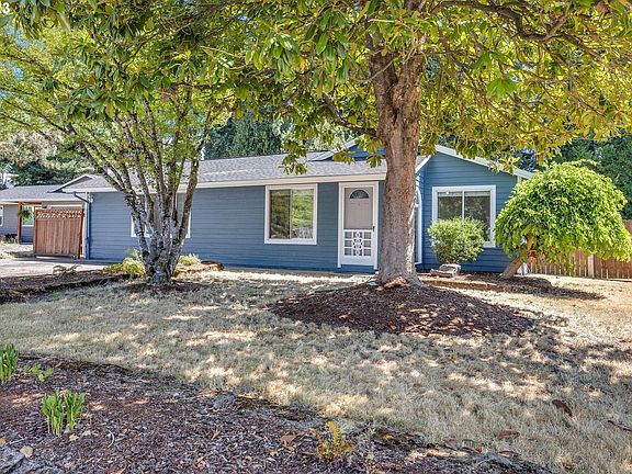 Enjoy one level living on a quiet street and large lot surrounded by trees. This home lives much larger due to the fantastic open floor plan that's great for entertaining. It also features four bedrooms, including a primary suite with vaulted ceilings, walk-in closet, and french doors to the patio and expansive backyard. Amazing opportunity for a home that is move-in ready, but also has endless potential to make your own! Fresh paint and new flooring throughout the home provides a head start! [Home Energy Score = 5. HES Report at https://rpt.greenbuildingregistry.com/hes/OR10199816]