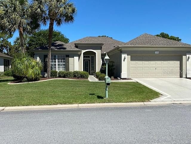Concrete block and stucco Madeira located on the golf course. Great curb appeal. Designer drive and walkway. Glass leaded entry door. Two bedrooms, two baths with den and inside laundry room. Open floor plan with updated kitchen (skylight), newer stainless steel appliances, granite counter tops, breakfast bar, closet pantry. Dining area is expanded with a bay window. No carpeting...only ceramic tile or laminate flooring throughout. Soft designer colors. Beautiful ceiling fans. Plantation shutters throughout. Master bedroom is also complimented by another bay window overlooking the golf course: laminate flooring. Master bath has double sinks, shower with frameless enclosure and water closet. Screened lanai with grilling patio. Nice back yard; possibly room for a birdcage. Extended two car garage; utility sink, key-less entry, pull-down attic storage. Re-shingled 2021. HVAC 2018. Water heater 2021. Termite Bond. Great way to start living the Florida lifestyle.