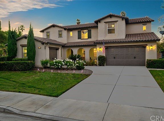 This fabulous "STAY"cation resort like home with spectacular views is situated on a 21,244 SqFt Lot. This beautiful 5BR, 4BA, 1 Office, 3-tandum and 1 single car garage home is in the desirable community of Sierra Heights. This home has been upgraded with smart thermostats, smart sprinklers, smart lock and electrical panel amps throughout. Upon entering you step into an open concept interior, grand formal dining and living room where you will find large double-paned windows that provide natural lighting. The home offers a large kitchen, stainless steel appliances, double oven, granite counter tops with complete backsplash coverage and an expansive kitchen island with an eat-in bar. This home has been cleverly upgraded and remodeled to accommodate multi-generation living. Downstairs is a secluded guest suite with full bath. You will find the downstairs office is fit for a true executive. The upstairs bedrooms are a "must see" the master bath has not only tiled shower with seat, a jetted tub but also a full body luxury shower. You will be totally impressed with the outside landscape, pool, putting green, and built in BBQ Island. The area has award winning schools (Lake Mathews & Miller), Low tax rate 1.1%, Low HOA, and No Mello Roos. Once you see this home, you will be asking for the keys.
