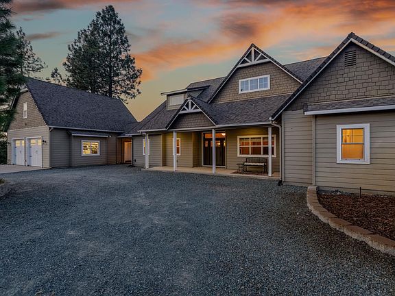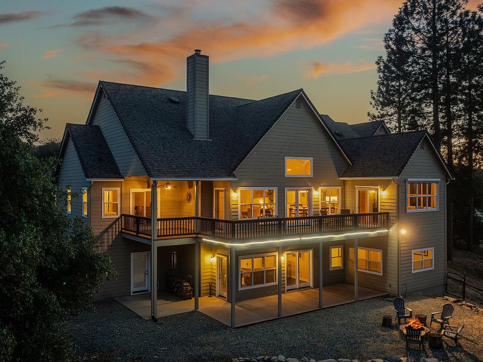 Set behind a gated entry, this 3,876 sq ft residence rests on 41+ fully fenced & cross-fenced acres, where panoramic views & breathtaking sunsets create a stunning backdrop for everyday living. Inside, the main level features an open-concept kitchen, dining & living area with direct deck access for outdoor enjoyment, plus a versatile space for a TV room or formal dining. The primary suite offers its own deck access, dual walk-in closets & en-suite bath. A guest bedroom, full bath, office & laundry complete this floor. The lower level is designed for entertaining with a spacious room, bar & fireplace, along with a guest bedroom, full bath, bonus room, plus storage area with shower for animals. The 30x50 shop with electricity & water plumbing plus a 10x30 attached carport provide excellent utility. The oversized main garage includes an unfinished 416 sq ft space above for future living quarters. Additional highlights include cement board siding, 2x6 construction, motorized screens for patio & breezeway, water purification system, dual 2,500-gallon holding tanks & a Firewise community. On the lower portion of the property, a cleared area offers the perfect site for a second home & separate area w/ corral is perfect for animals. Truly a rare opportunity in the Sierra Foothills!