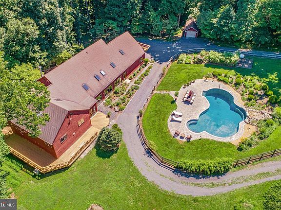 Phenomenal finely crafted custom home nestled on a sprawling 5.84 acres offering an exceptionally private wooded setting with pond access and an in-ground pool, . Freshly painted throughout; featuring beautiful Travertine flooring, passive solar heating with a low carbon foot print, brand new high rated roof with a 50 year warranty, open floor plan, soaring exposed beamed ceilings, and a panoramic scenic view. Prepare chef inspired meals in the gorgeous kitchen offering professional grade appliances, Viking double gas stove, marble counters, center island, breakfast bar, custom blown glass pendant lighting, and custom cabinetry. Enjoy your morning latte in the adjoining solarium adorned with multiple skylights and breathtaking black stone flooring. A graciously sized great room with a sunken gas burning fireplace with seating and multiple sliders along with the beautiful dining room providing deck access concludes the main level. Travel upstairs to find new carpet throughout the upper level. The perfect master suite highlighting a soaring vaulted ceiling, and an en suite bath complemented with rare North African stone in the large and luxurious walk in shower enclosure, and heated floors. Enjoy time in the private sitting area that is just off the master bedroom. A guest suite, two bedrooms each with a loft, two full baths, and a family room with a wood burning stove conclude the spectacular upper level. Partake in wonderful game nights in the impressive lower level recreation room. A laundry room and a six person Finnish sauna complete the inside of this stunning home! Host summer barbecues from the comfort of the outdoor oasis boasting a wraparound deck, hot tub, in ground pool, and a private scenic view. Don't miss out on the opportunity to own a piece of perfection right in Ellicott City!