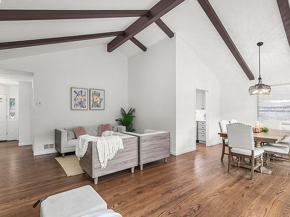 This charming 3 bed, 2 bath, single-story residence features striking vaulted ceilings in the formal living room, dining room and primary suite; all overlooking the picturesque and tranquil backyard. A freshly updated kitchen includes new appliances, stylish countertops and an eat-in dining area that flows into a generous secondary living space. With a bonus closet to use as a pantry or more storage, plus interior entry to the attached 2 car garage, you'll appreciate both the comfort and practicality of this gathering area. Recently painted walls, newly refinished hardwood floors and contemporary light fixtures throughout make this home feel modern and inviting. The rejuvenated hall bathroom vanity further enhances the home’s freshly appointed character. Venture out back to your secluded retreat, complete with a deck, patio area and mature trees providing ample shade and privacy - ideal for relaxation, play or entertainment. Cherished by its owners for decades, this lovely home is ready for you to claim as your own. Situated in the friendly Parkridge Estates community, you’ll enjoy easy access to nearby trails ideal for hiking, biking and dog-walking. Single story properties in this neighborhood are in high demand! Come see for yourself and fall in love with your new home.