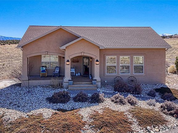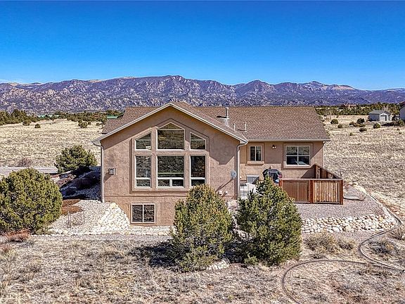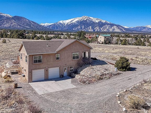 Discover this stunning mountain contemporary home in Mesa Antero, one of Chaffee County’s most desirable neighborhoods. Surrounded by piñon and ponderosa pines with breathtaking mountain views, this home offers both serenity and modern comfort. Step inside to a vaulted great room with a wall of windows, filling the space with light and framing spectacular mountain vistas. The open-concept kitchen features a large island, seamlessly flowing into the dining area and living room, where a cozy fireplace enhances the ambiance. The primary suite includes a ¾ bath and walk-in closet, providing a private retreat. A built-in desk nook, two guest bedrooms, and a full bath complete the main level. Downstairs, the bonus room offers a wet bar and beer refrigerator, making it perfect for a home theater or entertainment space. A large bedroom and ¾ bath provide additional guest accommodations. The two-car attached garage includes extra storage, while the adjacent workshop is a handyman’s dream, complete with built-in shelving. This ranch-style home with a walkout lower level is a rare find in a magical mountain setting. Don’t miss this opportunity