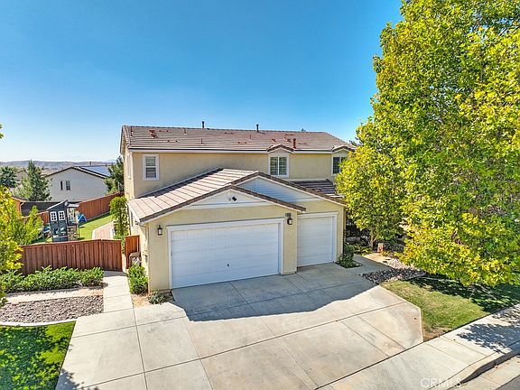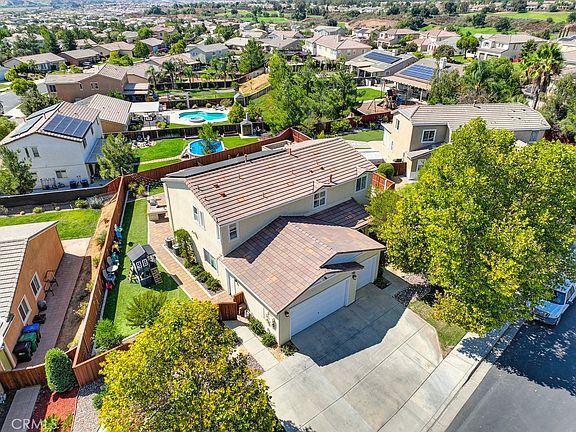 Welcome to this stunning 5-bedroom, 3-bathroom home nestled in the prestigious gated community of Tournament Hills II. This spacious property boasts breathtaking views and numerous upgrades throughout. The open floorplan seamlessly connects the living spaces, highlighting a beautifully upgraded kitchen with granite countertops, reverse osmosis system, ample cabinetry, and a pantry closet. The home features elegant laminate flooring, double pane windows, and shutters on all windows, providing both style and energy efficiency. The main level includes a bedroom and a full bathroom, perfect for guests or multi-generational living. Upstairs, the expansive master suite offers a ceiling fan, a walk-in closet, and a luxurious master bathroom with a separate shower and bathtub. Enjoy stunning views and relax on your private balcony. Additional upstairs amenities include large secondary bedrooms and a convenient laundry room with spacious cabinets and a sink. This home is equipped with dual AC units, digital WiFi connectivity for the thermostat, Ring camera, pool, reverse osmosis, and water softener systems. The expansive lot is beautifully landscaped with low-maintenance artificial turf and includes a sparkling pool, spa, built-in gas BBQ, gas firepit, and fruit trees, perfect for entertaining. Solar panels provide energy efficiency, while the 3-car garage offers ample storage. Tournament Hills II is a gated community that features a serene lake for fishing, parks, playgrounds, and lush green spaces, all with a low HOA. The home is conveniently located near two golf courses, adding to the community’s charm. Don’t miss the opportunity to own this exceptional home!