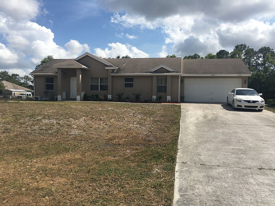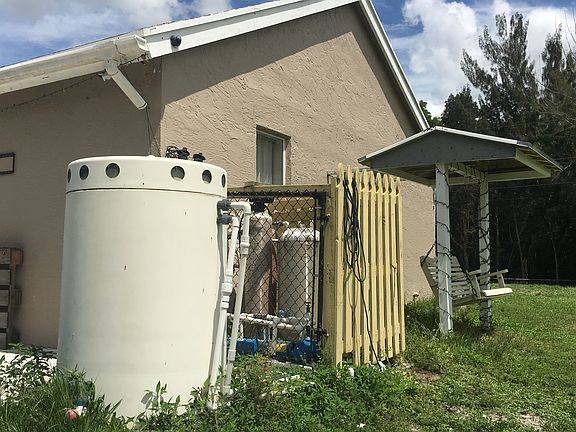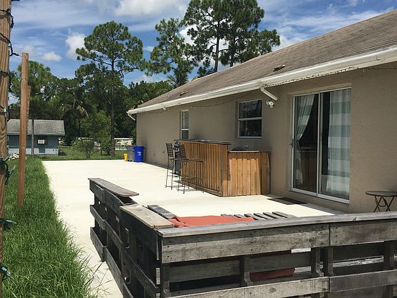 FULLY Fenced!! Bring your Horses! Come and live the country life. No HOA!! Great area in the Acreage. This home has a fully fenced yard and has 1.15 acres.. This adorable home has an updated kitchen with stainless steel appliances and a large pantry, only room with carpet is 1 bedroom the rest of the home has vinyl flooring. The 2nd bath has a new vanity. The air conditioning unit is only a little over 1 year old. There is a reverse osmosis system that stays with the home. Home has a generator hook up. From the sliders off the kitchen there is a 64 x 15 patio.excluded from sale are the following;all curtains and rods, light fixture over kitchen table, all cameras inside and out, shed on patio. All room sizes are approx.