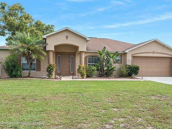 Don't miss out on this beautifully maintained 3 bedroom + bonus room home. This home features ceramic tile throughout the home, custom wood cabinets and granite counter tops with stainless steel appliances. Cuddle up in the living room to enjoy your favorite movie on the theater projector with built in surround sound. The split floor plan is perfect for privacy, and the master bedroom has a beautiful ensuite bathroom where you can relax in your dual jacuzzi fusion tub. This home has it all and bonus features include: Wired high speed internet in every room (cat6e ethernet), Linus security system readily available for activation, 50 AMP RV hook up & 220V for welders, fenced yard and irrigation system. AC 2018. Remediated settlement with full documentation and a lifetime warranty. Conveniently located 15 minutes from Weeki Wachee Springs and only 5 minutes away from the suncoast for an easy commute to Tampa, Clearwater Beach, St. Petersburg, Orlando and two international airports! Call to schedule your showing today!
