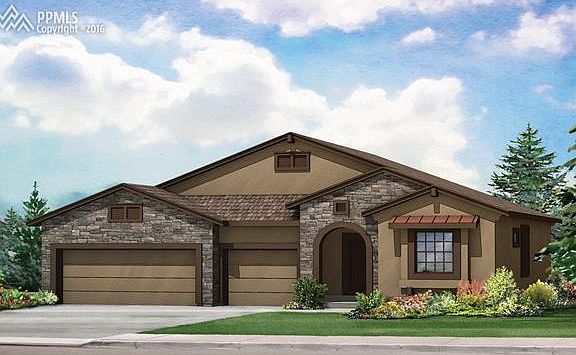 Ready March. Paradise Ranch Plan with 3-Car Garage located in Flying Horse: Four bedrooms (one more possible in basement), three baths, and three-car garage with service door and openers included. Kitchen includes breakfast bar island, Butler's pantry, canned lighting, Quartz or slab Granite countertops, stainless steel undermount sink, and stainless steel appliances including smooth-top electric range, built-in microwave above, and dishwasher. Air conditioning included. Gas line to patio. 2" faux wood blinds included in main level beds and baths. Main level Laundry. Mud Room with Bench. 18x9 covered patio off Nook. Finished basement hosts two bedrooms, bath 4, recreation room with wet bar and gas fireplace, and unfinished storage space. 1-foot taller ceilings included in basement. Lot #9 Filing 3 is 11,629 sq. ft., is on a corner and backs southeast.