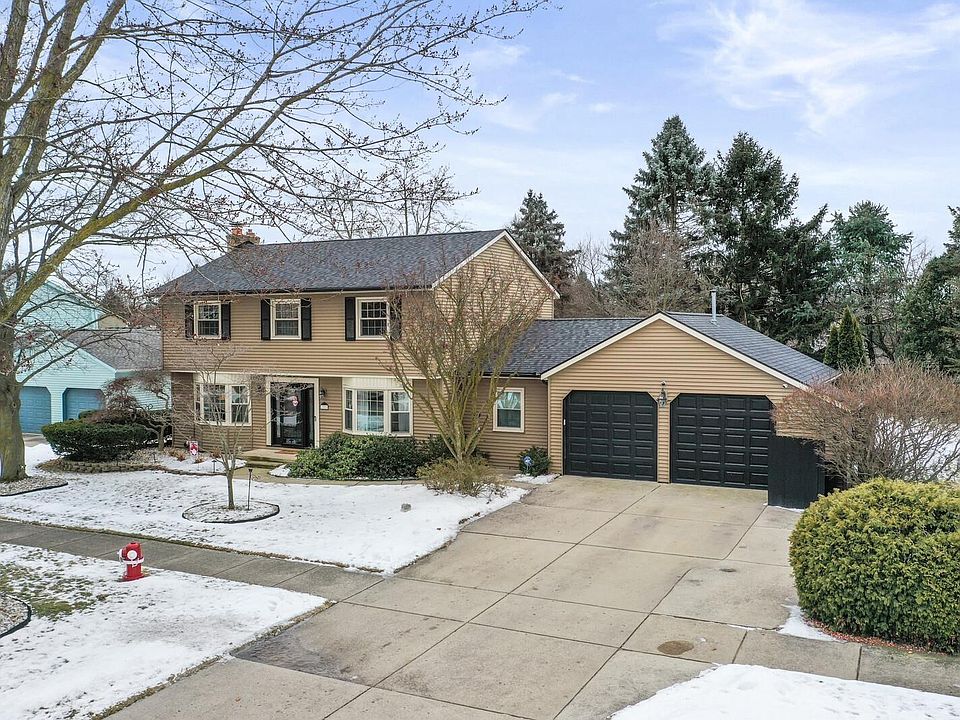 Welcome to this stunning Colonial home in Shelby Township, offering 4 bedrooms and 2.5 bathrooms. Filled with natural light, the spacious living room features a cozy fireplace surrounded by built-in shelving. The beautifully updated kitchen boasts quartzite countertops and backsplash, stainless steel appliances, and a charming dining nook. Adjacent to the kitchen is a versatile bonus space, perfect for a home office. A formal dining room provides an elegant setting for hosting gatherings. The convenience of a first-floor laundry room adds to the home's appeal. Upstairs, all four bedrooms showcase new vinyl flooring. The primary suite includes a private en suite bathroom for added comfort. The finished basement offers additional living space, ideal for recreation or relaxation. Step outside to enjoy the spacious deck, well maintained cobblestone rock landscaping, and an 8’x7.5’ storage shed. There is a run for your dogs to get out some of that extra energy. Additional updates include interior paint (2022), roof, gutters and gutter guards (2022), front door and sidelights (2023), A/C (2023), and hot water tank (2022).