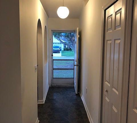 Great Opportunity with this beautiful 3 bedrooms, 2 full bath, 2 car garage home, it is located in a quiet neighborhood with NO rear neighbors. The split plan layout is perfect with the master bedroom having it's own bathroom and the second and third bedrooms located nicely by the second bathroom. New vinyl tile through out kitchen, hallway, living room and bedrooms. Spacious kitchen with lots of counter and cupboard space. Vaulted ceiling in living room, inside laundry room with washer and dryer included, walking closet in bedrooms, both bathrooms have large vanity sink with updated shower tub, lots of windows for natural lighting. This house has been freshly painted both inside and outside, sliding door in living room that leads to large fenced backyard, great for entertainment and relaxing. Close to shopping, restaurants and within 5 minutes drive to the Suncoast Parkway, which is less than a 45 minute drive to Tampa, beautiful beaches, Tampa Intl Airport, and malls, this home has so much to offer. Welcome home ! Tenant pays for water/trash/sewer and electric