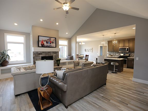 Beautiful new split bedroom ranch home located in Sienna Reserve on a walk-out basement. This gorgeous home sits on a beautiful pond lot. This is a brand new floorplan with an open concept. Greet your guests in the spacious foyer of this pristine home. Just off the foyer is a den which would be a wonderful home office. The kitchen features a custom maple cabinets, quartz countertops, tile backsplash, 42" upper cabinets, island and breakfast bar. The great room has a cathedral ceiling and a beautiful fireplace with built in window seats on each side. The owner's suite has a luxurious master bathroom with a porcelain tile shower, double sink vanity and linen closet. The views from this home are spectacular overlooking a pond. Sit on the deck and watch the sunset. Other features of this home include: 6x5 pantry, cabinetry in the laundry room, 9' ceilings, custom closets, deeper garage, full walk-out basement with stud, wire & insulation plus plumbing for a future full bath and plumbing for a future wet bar.