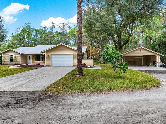 If your looking for you own slice of old Florida look no further than this stunning modern farmhouse. This amazing acreage home is set on a unique 1.81 acre lot that is fully fenced and filled with stunning live oaks that give this home a look like no other. Once you make your way into this beauty you will be astonished by the detail given to each room. From the recessed lighting to the fully trimmed out Impact windows. No detail was over looked. The stunning kitchen features quarts tops an new top of the line appliances. The bathrooms have been completely remolded and feature custom showers with floor to ceiling tile and stunning vanities. This home also has room for all the toys and a place to store them, as it features pole barn with small shop . This is a must see