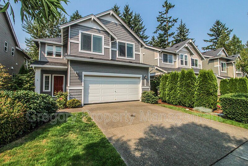 This home is in very good condition and sits in a nice neighborhood with very little car traffic. Easy access to transit, freeways, shopping. 2 neighborhood parks with playfields and large play toy. * 2 car attached garage with a driveway that will easily accommodate 2 cars. * The living room features a gas fireplace and a 2 story vaulted ceiling with tall windows bringing in the light. * Beautiful hardwood floors in the dining room and the kitchen. * Kitchen island has overhang for an eating bar. Will fit 3 or more stools. * Nice stainless appliances including gas cooking range. * Main floor washer and dryer. Washer and dryer included. * There is a loft space at the top of the stairs that will make a great office, play area or exercise area. * The Primary Bedroom is good size and will fit king size furniture. * Primary Bedroom bath with double sinks, soaking tub and separate shower with glass door. * Walk in closet in master. *Brand new interior paint throughout, brand new carpet on main floor *Full Entertainer's Patio to be installed in the backyard *Front Yard Landscaping care included in the rent! Small Dog considered. No cats. Find a video tour on our website **Don't click the REQUEST A TOUR button. OR visit our web site Gregory Property Management dot com and click ""schedule a showing""