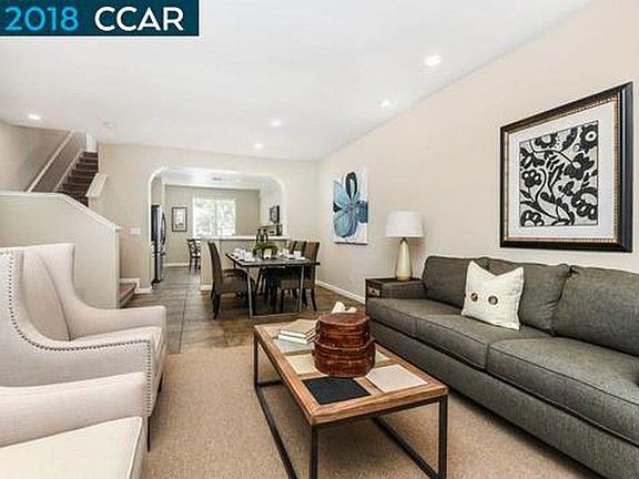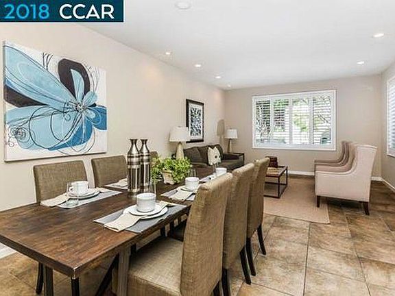 Open this Saturday (5/5) and Sunday (5/6) 1:00-4:00. Gorgeous four bedroom condo, only connected by garage walls, is ideally located near shopping, restaurants, top-rated schools and parks. This light and bright floor plan features a spacious kitchen/ family room combination including stainless steel appliances, built in microwave, dining nook and breakfast bar. Large family room with recessed lighting and plantation shutters allowing plenty of natural light. Spacious guests rooms with ample closet space and a master suite retreat with expansive walk in closet, views of Mt Diablo, and dual sink vanity. Central heating and air as well interior laundry area. Darling courtyard patio ideal for outdoor dining and entertaining. Spectacular community pool included in fabulous HOA and Amenities.