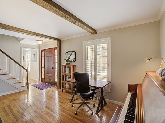 Charming Décor, Classic Layout, Custom Addition, and a most CONVENIENT LOCATION. This one has it all. In addition to a great gathering kitchen with newer appliances, casual dining space, and formal dining room, the first floor offers 2 flex spaces perfect for office, den or studio. On the second floor one will enjoy a first class owners' suite with an extra large closet and laundry area, an oversized walk in spa space and a large relaxing bedroom with vaulted ceiling. Three addition bedrooms and 2 full baths round out the second floor. Lower level enjoys a finished are for exercise or gaming, as well as a large space for storage or play. The outdoor area will not disappoint. A large covered porch is perfect for gathering friends and family to enjoy the firepit or yard games. Sooo much to offer, come see soon!