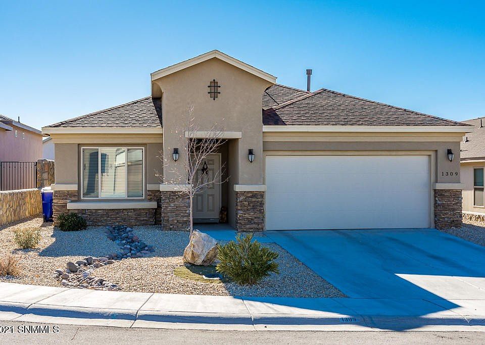 This home is an open floor plan with 1680 sq. ft., built in 2017, w/ 3 split bedrooms, 2 baths. Fully landscaped, high wall in backyard, pergola & extended open patio & close to community park. Conveniently located for shopping, Hwy 70 & I-10 access. Don't miss out on this special offering.