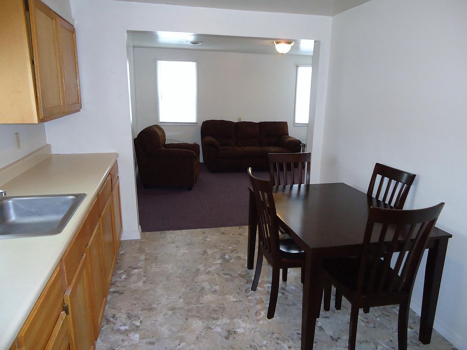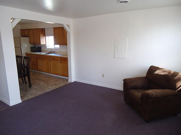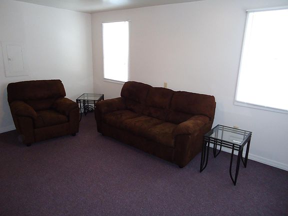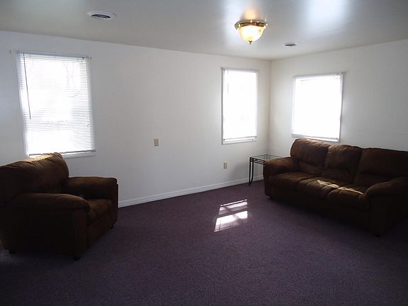 Available now! Clean, freshly painted, semi-furnished upper apartment in a quiet Watertown neighborhood convenient to Ft. Drum, restaurants, shopping, Thompson Park and Jefferson Community College. This apartment overlooks a tree-lined green space and less than a mile away is a river walk/picnic area for an easy and fun way to relax! You'll have your own private entrance with off street parking and in the cozy back yard there's a cement pad cook-out area with plenty of room for your patio furniture. The eat-in kitchen has new flooring, oak cupboards, a stainless refrigerator, stove, garbage disposal, microwave and a hardwood table with four chairs. Just bring your TV because an overstuffed couch and chair and two glass-topped end tables make this a very comfortable living room! The second bedroom could be used as a home office, guest bedroom work-out room etc. In the bathroom you'll see a large tub/shower tiled in earth tones, a roomy storage closet for toiletries and towels, and a full size washer and dryer for your use. Newer windows throughout the apartment let in lots of natural light and all windows have screens and blinds. The furnace is forced air natural gas to keep your heating bill lower. Tenant(s) pays utilities (electric/heat/water & sewer anywhere from 100-200 per month depending on where you keep the thermostat), trash removal and lawn care (7.50 per mow.) No smoking anywhere on property, and no pets. Longer term tenant preferred. Security deposit equal to rent required at move-in. Make this your new home!