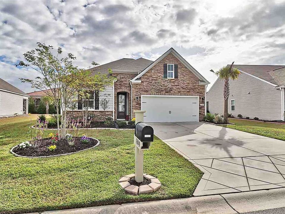 One truly amazing home. Only two years young. Spacious and open. Its all been done for you. Three bedrooms, two bathrooms, all window blinds convey, stainless steel appliances, gorgeous landscaping with stone borders, gutters, irrigation and a screened lanai. Lots of curb appeal with stacked stone accent and shutters. Ceiling fans in all rooms, wood floors, tile in bathrooms. Loads of closet space and attic storage with pull down ladder. Beautiful master bedroom with walk in closet and luxurius master bath. Double sinks, garden tub and a large walk in shower. Kitchen has Bisque cabinets, granite counter tops, fabulous center island with counter seating, which by the way, the counter stools are included, subway tiled backsplash and a large walk in pantry. Garage has epoxy coated flooring, garage door opener and meticously maintained. All of this in a private and quiet cul de sac location. Community/HOA fee includes the water for irrigation, basic cable, trash pick up, community pool maintenance and they mow your lawn! Close to shopping, restaurants, entertainment, medical facilities and area beaches. Be sure to see this terrific home before its gone!