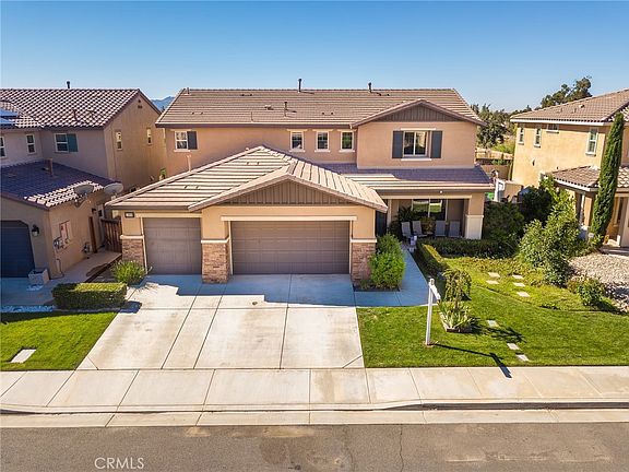 This beautiful 2 story home is located in the highly desirable picturesque neighborhood with breathtaking mountain views, Sundance community. Built in 2015, this home features wonderful curb appeal and an open floor plan. Solar Panels (buyer to assume solar lease). Garage offers EV Charging Station. This spacious house offers a generous living area of 3,258 square feet, providing ample room for relaxation and entertainment. With its desirable features, including two stories, 4 bedrooms, 3 bathrooms, this residence is sure to captivate you. As you enter, natural light floods the open and inviting living room and kitchen, creating a welcoming and cohesive space. The kitchen features a huge island, granite counters, making it a chef's dream. The abundance of storage and counter space allows for easy access. Upstairs, you'll discover a large bonus room that can serve as an extra bedroom or a fantastic entertainment space. The versatility of this room allows for various possibilities. The large indoor laundry room, ensuring ease of use and eliminating the need to carry laundry in and outside. Additional features of this remarkable property include a three-car garage, providing secure parking and storage options, and a well-maintained front yard overlooking charm and tranquility of the neighborhood. Central location, near schools, shopping. Easy access to 10 FWY and 60 Fwy. Minutes to Cabazon Outlets and Morongo Casino. Don't miss this one!