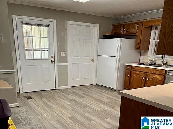NEW HVAC was installed 08/29/2024. One level low maintenance mostly brick home with metal roof. Within walking distance of Weaver High School & football stadium. Roomy home w/3 bedrooms, 2 full baths, master bath with walk-in shower. Eat-in kitchen, w/new laminate flooring & tile accent eating area, appliance to remain include: stove, new dishwasher, plus the refrigerator stays. Separate dining room, den (or could easily be converted to a 4th bedroom). Full Laundry room located just off the kitchen. Some new interior paint, new ceiling fans. New waterproof flooring in bathroom. Large covered, screened in rear deck, great for year-round grilling. Large, fenced yard with plenty of room for any activity, garden area or for your pets. Outbuilding/workshop. Extra covered parking to the side Plus the main single carport w/storage room. Gas-back-up wall heater for emergencies in case of winter power outages. Must see to appreciate the space this home and the yard has for all your needs.