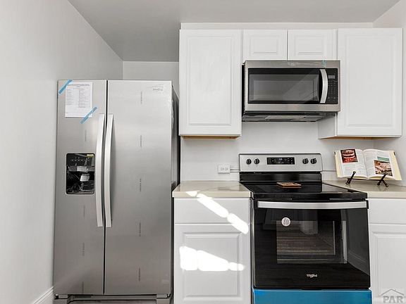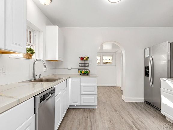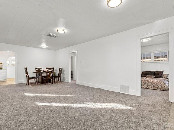 Spacious remodeled 4 bed, 2 bath brick rancher with inviting covered front porch. Home boasts 2 single car garages & covered rear patio. Tall windows allow natural light to pour into expansive living room and dining area. Bright white walls, multi-fleck carpet, and luxury vinyl flooring will compliment your personal touches and accents! The kitchen boasts white cabinets, custom poured countertops, & stainless appliances (fridge, stove, microwave & dishwasher). Laundry room with ample space for a pantry cupboard or sitting bench. Primary and 2nd bedrooms are surprisingly large (queen beds for staging to showcase room size). Open presently to the primary bedroom is a nursery (3rd bedroom) with its own miniature closet. Could also be an ensuite office or sitting area. The basement has three big rooms. The family room was originally utilized as a bedroom that adjoins an enormous unfinished room 17.5' x 26' (giant walk-in closet, indoor workshop, gaming room or crafting cave). The other non-conforming bedroom could also be an office, gym or playroom. Adjacent to the new 3/4 bath is the canning/cold storage. Perfect area for holiday items, reloading room/gun safe, or seasonal clothing. The new electrical panel is also located here. Additional major upgrades (permitted to current code) include electrical, plumbing, water heater, refrigerated central air conditioning unit, sewer cleanout and concrete walkways. Simply pack your bags and move in!