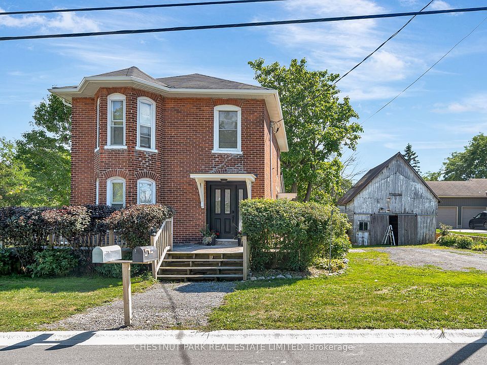 Welcome to this beautifully renovated detached brick home in the heart of Rednersville. This two-storey century residence has been completely modernized while maintaining its timeless character, offering both comfort and charm in equal measure. The home has been updated from top to bottom with all new insulation, drywall, and electrical wiring, and it features propane forced air heating (2024) , a propane fireplace, and mostly newer windows installed in 2020. The generously sized living room is warmed by a cozy fireplace, creating the perfect spot for family gatherings. The main floor boasts a stylish bathroom with a walk-in shower as well as a convenient main floor laundry room. The heart of the home is the fully renovated kitchen, complete with an island, marble countertops, and extensive cabinetry, which flows seamlessly into the bright dining area. From the dining space, walk out to a generous deck that overlooks 2.3 acres of meadowlike views. The property provides both privacy and space to roam, with one acre fully fenced for children and pets without detracting from the beautiful open landscape. Upstairs, the huge master bedroom features gleaming hardwood floors and a serene atmosphere. A newly added second bathroom includes a walk-in shower and a stunning claw-foot tub, while the second bedroom is also very spacious, beautifully decorated, and filled with natural light. The property also includes a garage/carriage house that would make an ideal additional suite or creative space.Perfectly situated in the Hamlet of Rednersville, this home is just ten minutes from Belleville, twenty minutes from Wellington and Picton, and twenty-five minutes from Sandbanks Provincial Park. With its rare combination of century charm, modern upgrades, and a picturesque lot, this property truly has so much to offer.