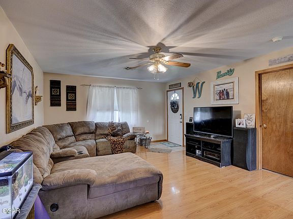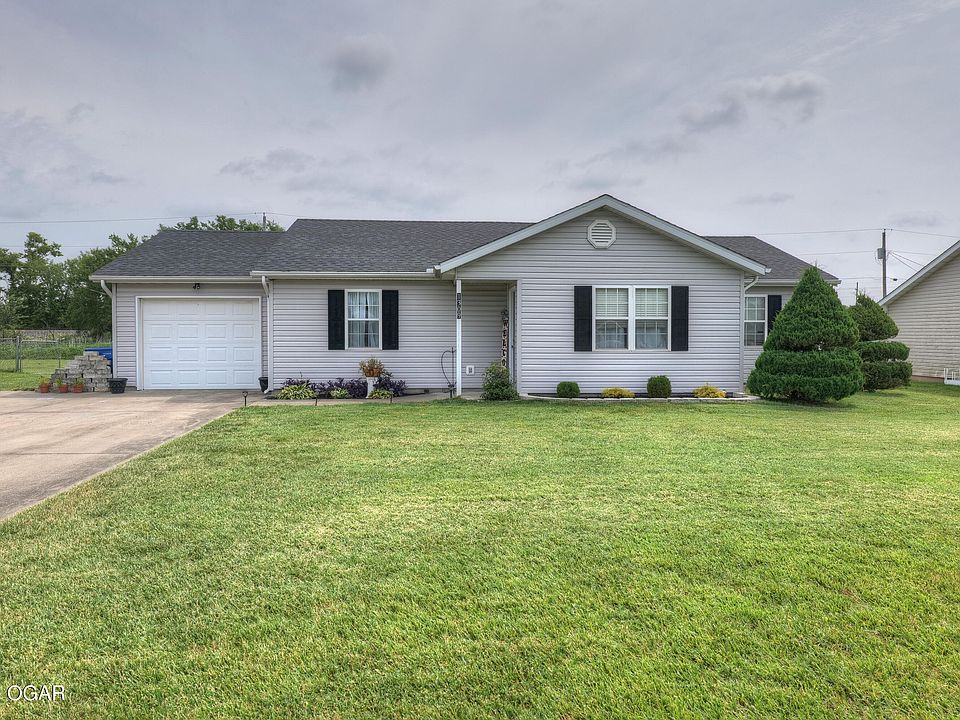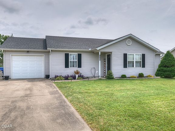 Carl Junction home with 3 bedrooms, NEW roof, vinyl siding, fenced backyard and oversized driveway! This cute home is perfect for a first home or investment property. Split bedroom floorplan, laundry room between garage and kitchen, deck in the back off the dining room, covered front porch, newer heat and air unit, spacious master bedroom with and en-suite bath and walk in closet.