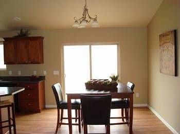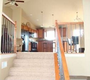 Stylish open floor plan with spacious rooms, vaulted ceilings, 3 bedrooms, 2 full baths on the main and sliders to deck. Maple kitchen with center island convenient for cooking or entertaining. Lower level ready for 2 additional bedrooms and full bath. Home backs up to creek and proposed new city park with bike trails to nature area. One of the quietest neighborhoods around.