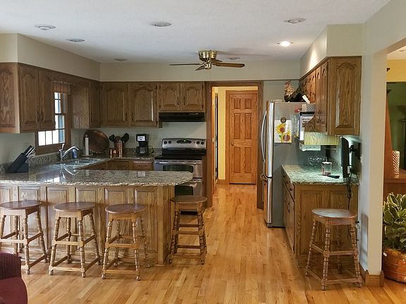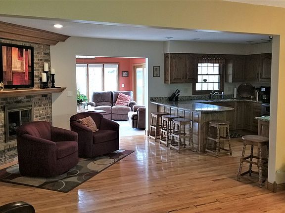 Open floor plan between kitchen, living room & dining room, main floor has extensive remodel. Solid oak hardwood flooring on main floor. Main floor has new oak trim & 6 panel oak doors & new front door. Sun room has vaulted ceilings and in floor heat, kitchen has oak cabinets with granite counter tops. Remodeled master bedroom bath with walk in shower with glass doors & ceramic tile & walk in closet. 3 more bedrooms upstairs & a full bath. Full finished basement with family room & lots of storage. Natural gas generator. Roof 5 years old. Hot tub negotiable. Beautiful home, just move in!