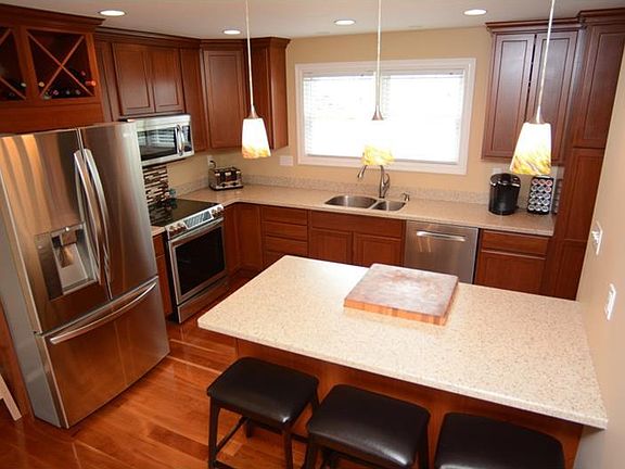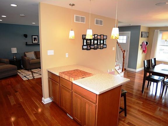 BEST BUY IN THE AREA! 4 year old colonial home is like buying new construction. Greet guest on the covered front porch with white vinyl railings. Step inside to see gleaming cherry hardwood floors. The formal living room has surround sound and is open to the bonus room. Imagine the possibilities! The bonus room patio doors let loads of natural light and lead to a large composite deck with vinyl railings with solar lighting and an expansive level fenced rear yard. The cook in the family will love the custom cherry kitchen with modern pendant lights, recessed lighting, solid surface counter tops, stainless steel appliances including a Samsung induction smooth top stove with convection oven, LG French door refrigerator, LG microwave, Bosch dishwasher and pantry. The formal dining room is open to the kitchen which is great for entertaining and provides plenty of space for a large table, your favorite hutch or server with ease. The dining room has a modern chandelier on a dimmer switch, recessed lighting. In the upper level you will find a luxurious master suite with plush neutral carpet and large walk-in closet with custom shelving and octagon window. There's also an additional double closet. Convenient to the master suite is the laundry area with LG front load washer and dryer included! The master bath features a large custom tiled walk-in shower with glass door, large double bowl vanity with brushed nickel fixtures and ceramic tile flooring. The upstairs hallway has a large linen closet and recessed lighting. You will also find two more spacious bedrooms with plush neutral carpet, large windows and closets with built-in shelving and lighted ceiling fans. There is also a main hallway full bath with tub/shower combo with ceramic tile surround, ceramic tile flooring and vanity with storage. There is also attic access on this floor. The finished lower level will be entertainment central! Game room with custom built-in shelving, surround sound, projector screen tv, plush neutral carpet, tray ceiling, recessed lighting and crown molding and convenient powder room. Other features of this home include: central air , recessed lighting thru out, oversized concrete driveway and walkway, one car integral garage with built-in storage, central vacuum system, Aqua Pure whole house water filtration system, utility room with storage and laundry sink. Minutes to shopping and major roadways! MUST SEE INSIDE! ACT FAST!
