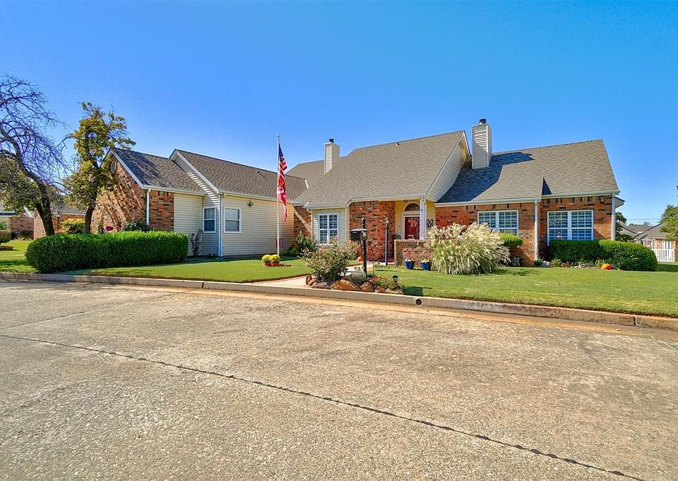 Price Reduced!!!!If you are looking for a darling home in the heart of Midwest City look no further. The Timbers is a highly sought after community. As you walk in, you’ll notice all the architectural detail w/the high vaulted ceilings, ceramic wood look floors & a gas fireplace. Living area flows nicely into the kitchen. The Kitchen has many updates, granite countertops, flooring, new cabinetry, & the lower cabinets are pull out drawers! Everything inch of this kitchen was well thought out .The master bedroom is spacious w/two walk-in closets, & an updated bathroom including marble look flooring & an oversized shower w/dual heads. The second bedroom is spacious with a great closet. The second bathroom has been updated also w/marble look