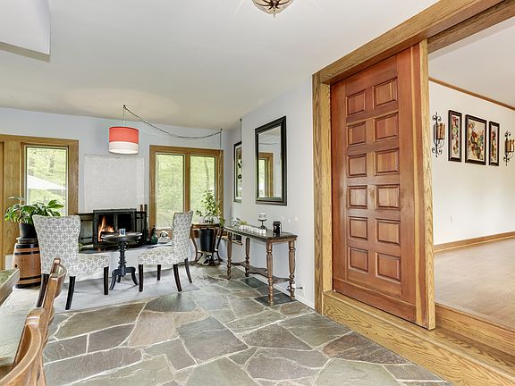 Unique, German inspired custom home on 2.38 wooded acres. Fabulous features include German fireplace/oven, wet bar, library with built-ins. Kitchen has Corian counters, Jennaire appliances, and eating bar. Master offers sitting area with fireplace, separate vanities, jetted tub, and walk-in closet. WOW guests with your wine cellar with bank vault door. 3-car garage with workshop. 3D Tour in links!