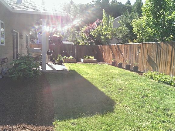 Open floor plan gives you a spacious great room with kitchen and living areas connected. Hardwood floors in main room and kitchen. All stainless steel appliances, with large island and breakfast bar, make it a great kitchen for entertaining. Features large master bedroom and bathroom with jacuzzi tub, walk-in shower, and two spacious closets. Low-maintenance yard with small raised vegetable garden and mature strawberry plants. Exterior freshly painted. Covered concrete patio offers year round outdoor living space. Furniture and area rugs are negotiable, everything in the main living area is less than two years old and very good quality. Purchased specifically for this house.