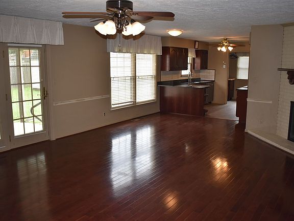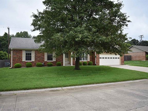 Great open living area in this 3 bedroom, 3 bath one-level brick home. Separate living room, open family room with gas fireplace, nice kitchen with stainless appliances and granite tops. Island is portable and presently in the laundry room but can be moved back in the kitchen and stays. New carpet in the bedrooms installed 7/20. New vinyl floor covering to be installed in middle master bathroom. Large handicap accessible master bath with large walk-in shower. Covered back porch in privacy fenced backyard. 12 x 16 storage barn included. Nice home in a convenient location close to Henderson and Evansville access!