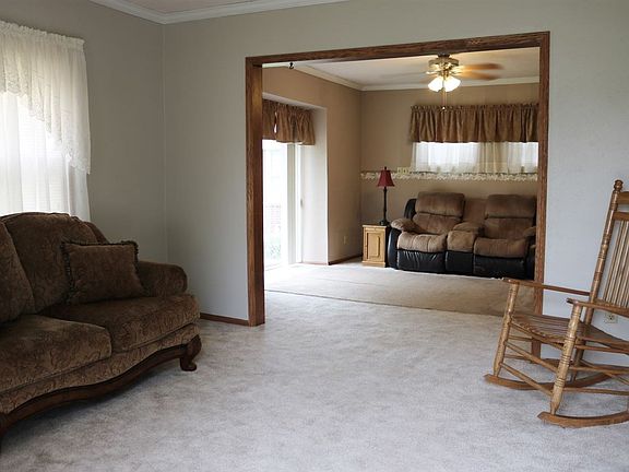 Very well maintained bungalow style with large attached 2 car garage. HUGE corner lot. Interior updates are great. Nice kitchen with what appear to be Becker cabinets. Appliances included. Living and family room. Formal dining space. Newer windows/doors. Main floor master bedroom with 2 additional bedrooms upstairs. Small cellar for storms. Move in ready. Fresh paint inside and out.
