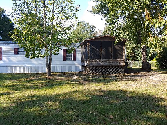 Lovely well-kept 16x70 mobile home situated on .64 acres. Home features great room concept with cathedral ceiling which opens into kitchen/dining area. Kitchen has lots of cabinet/counter space equipped with all electric appliances including stove and vent hood, dishwasher and refrigerator and a row of upper glass cabinets to display your "pretty" dishes.. Off the dining room is access to a screened-in back porch with a lovely view of the property. The master bedroom and second bedroom are located at opposite ends of the home. The master bedroom has his and her closets and features a massive bath complete with soaking tub, separate shower and double vanity. The second bedroom has a walk-in closet. There is a separate laundry area complete with washer and dryer. A screened-in porch is accessed from the great room has a beautiful view of the front yard enhanced with mature trees. The front and back yards are completely fenced.