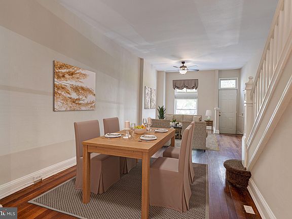 Welcome to this quiet street in Washington Village just steps to Carroll Park and close to everything Baltimore has to offer!  The first level features an open floor plan.  The light- filled living room is adorned with gleaming hardwood floors. An inviting dining area is perfect for entertaining. A spacious eat-in kitchen boasts table space, stainless steel appliances, lovely solid wood cabinets, recessed lighting and gas cooking.  On the upper level is the sunny primary bedroom hosting plush carpet and a walk-in closet.  There is a second generously sized bedroom with multiple closets and a full bath with double sinks, modern tiling and soaking tub.  On the lower level is a family or bonus room and a large laundry space with ample storage.  Outside in the rear, there is a patio inside a fully fenced yard great for morning coffee or entertaining family and friends.  Walk to Carroll Park, Pigtown Community Garden. Close to  Camden Yards, M&T Bank Stadium, the B&O Railroad Museum and the Inner Harbor. At the gateway to I-295 and I-95  and a 10 minute walk to University of Maryland school and Biotech Park and downtown Baltimore Updates: Paint, Lighting, Ceiling Fans, Window Treatments
