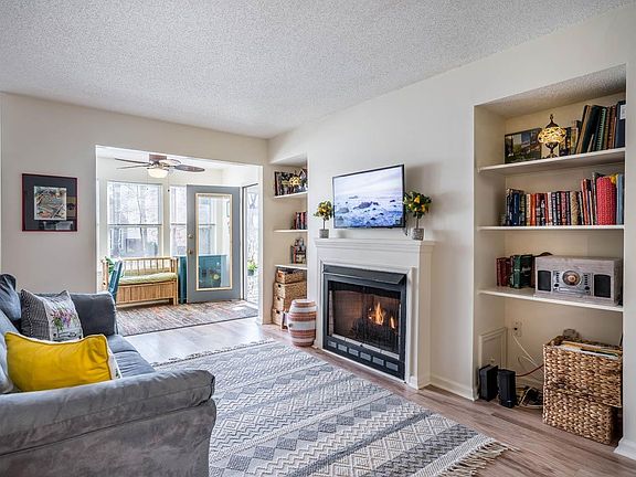 An offer has been accepted! Fabulous first level condo facing the wooded buffer in desirable N. Raleigh Location! Move in ready. Newer flooring and paint throughout. Kitchen with Gas range and Stainless appliances. Family room with cozy gas fireplace and built-ins. Bright sunroom area used as a flex space (office, reading, relaxing) while enjoying the views. Main bedroom with private bath with new vanity, mirror, lights. Spacious walk-in closet. Sunroom and owners suite both lead out to the newly enclosed patio by Porch Conversions. The only condo with this porch! Second bedroom with private bath and walk-in closet. Community pool surrounded by lush landscaping. 2 Minutes away from Target, Whole Foods, Home Depot, Panera, banks and much more! Great location!! SEE WALK-THROUGH VIDEO