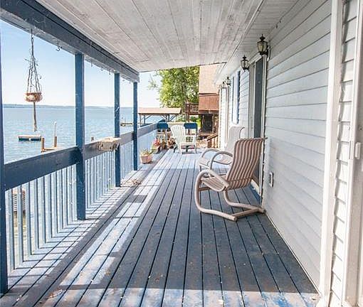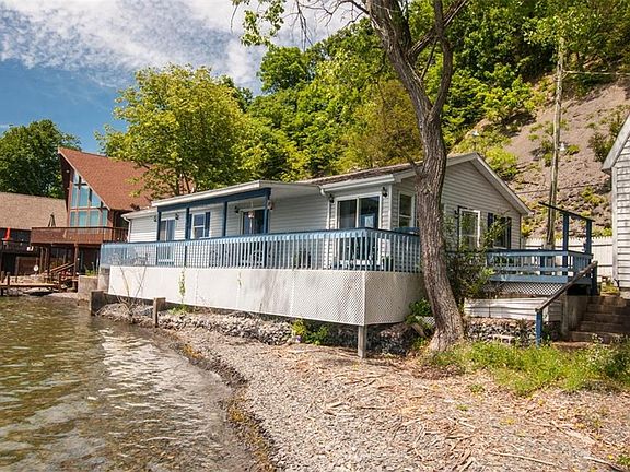 125 feet of Cayuga Lakefront with year-round living on the lovely east side of the lake! The open floor plan allows for easy visiting with family and friends. There is even plenty of room for a possible third bedroom. The master bedroom has its own slider to the deck overlooking the lake. The master bath has two sinks, a shower, and a whirlpool tub! Two other sliders open out to the 52-foot wrap-around deck. All ceilings have been artistically plastered, the gas-log stove in the living room wards off the chill year-round. The garage has a walk-up attic which presents a plethora of possibilities! Close to wineries, pottery studios, and Long Point State Park, this beautiful home needs to be yours! Don't wait, at this price it won't last long!