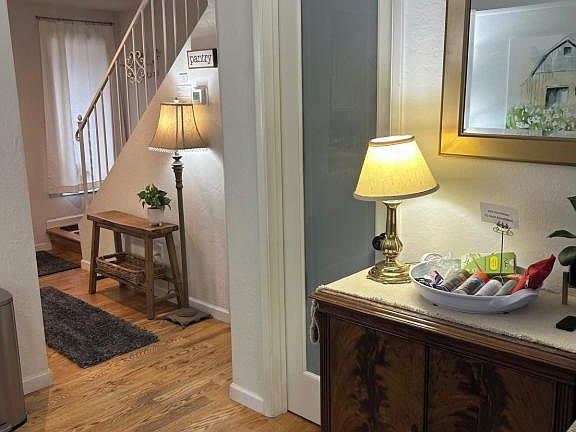 - Exterior features: (2) Earplugs, (2) shower curtain, (2) three prong phone chargers, 2 mason jars, 2 spray bottles, 2 throw blankets for living room, 4-5 coco packets, AMENITIES, Accent blanket, Accent pillows, Air filter for unt, Air fryer, Air purifiers (2), All consumables are initial stock only, Baking pans and sheets, Baking soda, Bar soap, Bar-b-que utensils, Bath towels, Bath towels - 6, Bathroom rugs, Bathroom sink, faucet and cabinet, Bathroom towels (4 of all), Battery refills, Battery tester, Bedframe, Bedroom Essentials, Black cloth for eye makeup, Black face towels, Blanket for each bed, Blender (Large), Blender (Personal), Board Games, Body wash, Bowls, Bread maker, Brillo SOS pads, Broom + Dustpan, Butter Knives, COVID compliant cleaning products, Cable not included in rent, Can opener, Candy refills, Closets in each bedroom, Coffee, Coffee Bar, Coffee Grinder, Coffee mugs set of 6, Coffee table, Comet, Conditioner, Consumables, Cooking sheet, Cookware, Cotton pads, Couch, Councill Stand, Crock Pot, Cups, Curling iron, Curling or Flat iron, Cutting board(s), Dawn generic, Dawn spray wash, Dedicated work space with desk, Did you forget something?, Dining Table Chairs, Dining Table Dcor, Dinnerware, Dish brushs, Dish cloth, Dish soap, Dishes set of 6, Disinfectant, Disposable razors, Disposable shower cap, Dog leash, Dresser or storage for personal clothing, Drinking glasses set of 6, Drying rack for clothes, Espresso maker, Extra linen (2/ bed), Extra pillows and blankets, Feminine pads, Fire Extinguisher, First Aid Kit, Floss, Forks, Free visitor parking, Gallon bags, Garbage bags, Garbage can, Garbage cans, Glass bowls for cooking, Glasses, Hair spray, Hand Towels set of 6, Hand mixer, Hand soap, Hand towels, Handi-chopper, Heating: Oil, Heating: Propane / Butane, Hot pads, Hot water kettle, Insta Pot, Internet not included in rent, Iron, Iron Board, Jump rope, Keyless entry, Kitchen rugs, Kitchen sink and faucet, Kitchen spatula sets, Kitchen stools, Kitchen table with seating provided, Kitchen towel, Kitchen towels - 3, Kitchen wash cloth - 2, Kitchen with space for guests to prepare; cooking and for serving meals, Knife/Scissor sharpener, Lamp, Linens, Liquid hand soap in each sink, Living Room, Luggage drop off allowed, Luggage rack for each room, Matching hand/dish set, Mattress, Mattress Protector, Mattress Topper, Mattress protector (medical grade, allergen and bed bug protector quality), Measuring cups, Meat thermometer, Medicine ball, Microfiber cloths for cleaning, Mini mirror, Mini tape measure, Misc, Misc Home Items, Misc dcor, Miscellaneous, Mixing bowls, Mixing spoons, Mouthwash, Mugs, Nail clipper kit, Ninja blender, No Utilities included in rent, Outdoor dining provided on-site, Outdoor dishes, Owner locker, Paper napkins, Paper towels, Paw Safe, Pet hair lint brush, Pillow cases allergen protectors, Pillow protectors (medical grade, allergen and bed bug protector quality), Plates, Pots and pans for cooking, Pour over coffee, Private entrance, Q-tips, Quality pillows for each bed (4), Razor shaving cream, Razors, Record player and records, Regular drip coffee maker, Rice cooker, Robes - 2 sanitized and clean, Rug, Rug/bathmat, Safe, Salt pepper, Sandwhich bags, Saucepan, Shampoo, Shampoo, Conditioner, Shower gel and hand soap, Shower / Tub rug, Shower and/or tub or shower/tub enclosure, Shower curtain, Shower curtain liner, Silverware set of 6, Single serve pod coffee maker, Slippers - 2 pair sanitized and clean, Spatula, Sponge, Spool hair catchers, Spoons, Steel pads, Stock pot, Strainer, Swiffer sweeper mop heads, TV, TV remote, TV's smart with Roku 2 to 3, Table Dcor, Table top mixer, Tea, Tea Kettle, Tilt head stand mixer, Tissues, Toaster, Toilet paper, Tooth brush disposable, Tooth paste, Toothbrush - disposable, Toothbrush paste, Toothpaste, Trash bags 13 gal., Trash bags 3-5 gal., Trash cans in each room, Vinegar, Waffle maker, Wash cloth, Wash cloths - 6, Wifi available throughout, Wifi router or extender, Wine corkscrew, Wine for guest, Wine glass cups, Wine glasses, Wine glasses set of 6, Wireless Universal Chargers (2), Yoga bricks, Yoga mat, allergen protectors for all beds, aluminum foil, bathroom spray, bathtub, bed linens for each bed, bed linens for every bed 2 sets provided, bleach cleaner, bottle opener, bucket shower snake, chip clips, coffee pod insert, combs, cotton balls, cutting block, decaf coffee, duvets for all beds, fire extinquisher, furniture pads, hand soap refill, hot cocoa, ice trays, kitchen dish cleaning utencils, kitchen sink strainer, kitchen soap refill, light bulbs, local business binder, lotion refill, magic eraser pads, mini cups, mouthwash refill, napkin rings, napkins cloth, olive oil for refills, outlet covers, parchment paper, pens paper, pepper, pet cleaning spray, placesetting for table, plastic wrap, pumice stone, quart bags, quilted mattress pads, salt, set of new sponges, sheet sets for all beds, shower cap, shower curtain liner (new) with existing hooks and curtain, shower drain catchers, shower gel, shower head, shower slip mat, spray deodorant, stain remover, stevia/equal packets, tape dispenser, te abags, throw blankets for all beds, to go cups, to-go cups, waterproof cabinet liner, window cleaner, wreath on front door