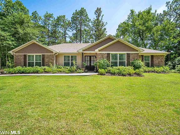 Perfection is an understatement. This almost new custom home is located in one of Bay Minette's most coveted neighborhoods, Bonnie Brae Estates. Offering a 4 bedroom and 2 baths, split floorplan, open concept with upgrades galore. As you make your way to the front porch you are greeted with luxurious landscaping and MOHOGANY DOUBLE DOORS. Inside, the LUXURY VINYL PLANK flooring moves smoothly throughout home, and ONE OF A KIND LIGHT FIXURES brighten the space. The OPEN CONCEPT has space for all entertainers or chefs. The kitchen as GRANITE COUNTERTOPS, PAINTED WHITE CABINETS AND STAINLESS-STEEL APPLIANCES. The master suite is spacious, boasting custom lighting, vinyl plank flooring and HIS AND HER CLOSETS. The master bath is the perfect sanctuary. The separate DOUBLE VANITIES have GRANITE COUNTERTOPS and upgraded mirrors. The GARDEN TUB is surrounded with added trip and character. While the DOUBLEHEAD TILE SHOWER is oversized and roomy. Outside, the yard is LANDSCAPED and beautiful. The large COVERED BACK PATIO is great for tea and lazy Sundays. Plus, a natural GAS HOOKUP for the grill is located steps from your back door. Call you schedule a showing! Property Perks: FOAM INSULATION, GRANITE, UPGRADED VENTS, GAS RANGE WITH CONVECTION OVEN, GAS FIREPLACE SURROUNDED WITH RECLAIMED WOOD, DOUBLEHEAD SHOWER, TILE, VINYL PLANK FLOORING, CROWN MOLDING, HAND SCRAPED SUBWAY TILE, TANKLESS WATER HEATER, DOUBLE PANE WINDOWS, GRINDER PUMP and much more.