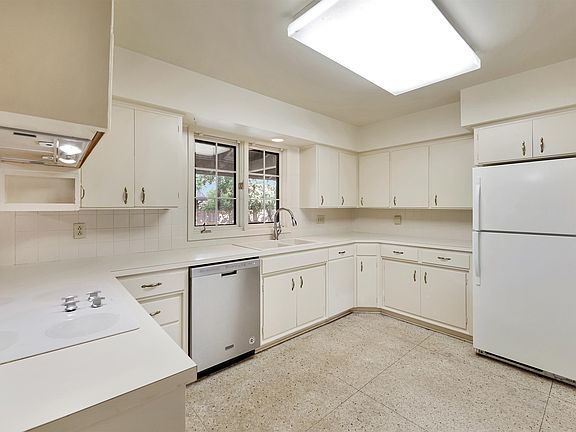 Discover the timeless elegance of this sprawling Mid-Century Modern home, a true testament to its era’s architectural brilliance. Located in a beautiful tree lined neighborhood, this residence seamlessly blends classic charm with modern potential. Step inside to a grand foyer adorned with original Terrazzo flooring—a rare find that spans the kitchen, eating space, and hallway. With a bid for $2200 to clean and polish these floors, they’ll shine once more, reflecting the home’s original splendor. The large living room features expansive windows and direct access to an East-facing courtyard, perfect for entertaining or quiet relaxation. A formal dining room offers ample space for gatherings and memorable meals. The upper level showcases beautiful hardwood floors in the hall and one bedroom, adding warmth and character to the home. The courtyard and backyard, once lush and inviting, are ready for a touch of TLC to restore them to their former glory. Built primarily of durable brick, this home boasts a new HVAC system and fresh exterior paint completed in 2024. With just a bit of sweat equity—some interior paint and minor flooring updates—you can elevate this house to its Mid-Century Modern magnificence. Embrace the opportunity to make this classic beauty your own, and enjoy the unique charm and potential it offers. Schedule a tour today and envision the home as a centerpiece of Mid-Century Modern elegance!