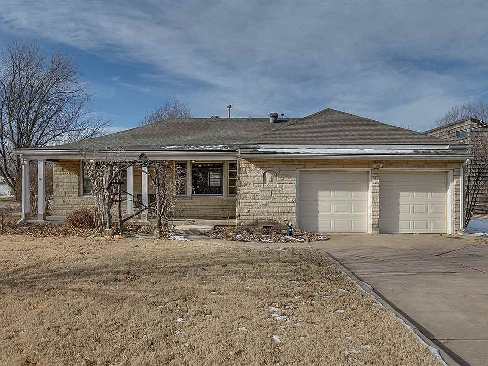 WOW! A SHOP.. OUTDOOR LIVING AREA, and a 1/2 ACRE! This country living estate in the city features over 1200 sq ft with 2 bedrooms, 2 baths, and 2 car garage PLUS a 30 X 30 shop out back! The specialty limestone adorns the front of this home with exquisite detail! The curb appeal and landscaping are gorgeous. Inside you will find character abounding throughout, and the home just keeps going! Each room is inviting, cozy, and well defined. From the hand-picked bathroom fixtures to the decorative tile ceilings, there is so much to appreciate. Next to the kitchen you will find the beautiful dinning room, complete with custom remote controlled stone fireplace and large pantry! In the back is the office/ sunroom is a wonderful space with natural light. The attached bath, NEWER windows, and NEWER HVAC ducting, you will be comfortable any time of the year. Out back the amenities continue with a storage building, covered patio, and fire pit. If you love to relax or entertain outside in comfort, this is the place for you! The shop is amazing and ready for any hobby enthusiast. With power, concrete floors, and nostalgic wood-burning stove, what more could you need!? The yard is big with plenty of room to play or have a garden and the irrigation well means water is always near. We could go about the all the many updates but you need to see for yourself.