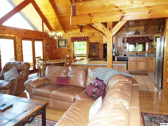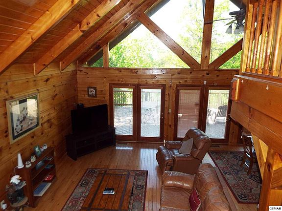 This 3 bedroom, 3 bath cabin is conveniently located between Gatlinburg and Pigeon Forge! The cabin is easily accessible with plenty of level parking. Entering from the side of the cabin is a large open room with an in-ground hot tub surrounded by windows for a nice wooded view. Moving on to the main level you will find the an open floor plan consisting of a large living area with cathedral ceilings, dining area and a fully equipped kitchen. Step out unto the wrap around deck with seasonal mountain views. Just off of the living area is the first bedroom and bath. Up to the second level is the loft and the master bed with a large a private bath with a whirlpool tub. Down to the lower level is the game room with a pool table, air hockey, seating area, the third bedroom and bath. This is a great rental cabin but would also make a fantastic permanent residence.