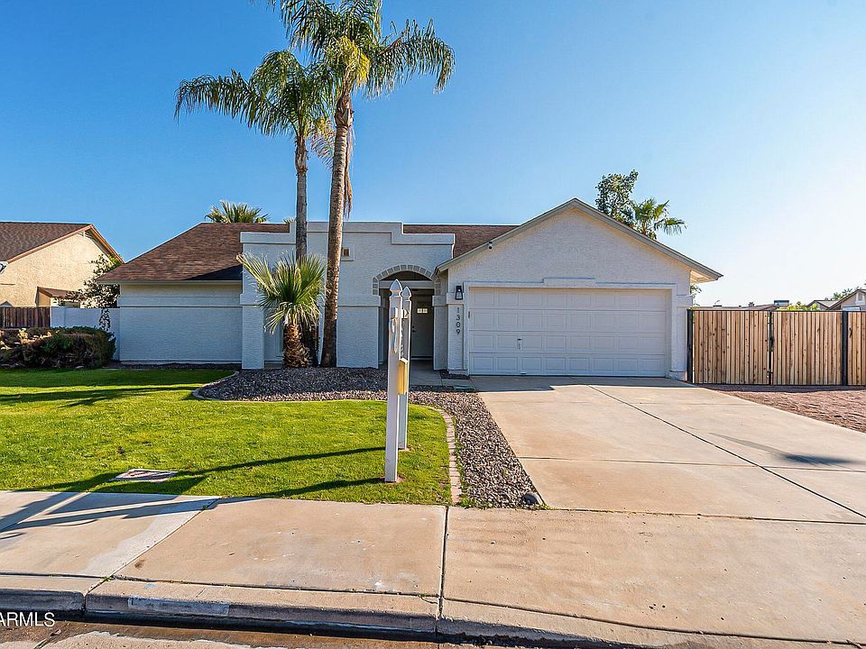Full beautiful remodeled (by a licensed contractor) home in Mesa located on a non-HOA community and corner lot. Fresh exterior paint and lush green grass welcome you to your new home on Rochester. Enter the front door to vaulted ceilings throughout the living/dining areas. Gorgeous stone and trimmed wood burning fireplace is the focal point of the main gathering room. Entire kitchen remodel with white shaker cabinets (soft close), stainless steel appliances and white with vein calacatta quartz counter tops. Luxury vinyl plank throughout the main living area with plush carpet in the bedrooms. The master en-suite overlooks the pool/hot tub and features vaulted ceilings with a walk-in closet. Bathroom offers dual vanity, freshly tiled walk-in shower with modern touches. The additional bedrooms are split for privacy and are good size. The ideal corner lot located in a cul de sac with covered patio, RV Gate that actually allows RV parking with NO HOA. This charming home will be one that you want to check out before it is sold!