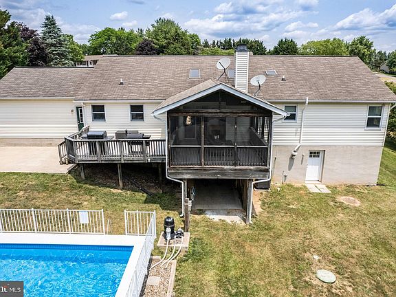*Welcome to this beautiful 5BR 3Bath large rancher in the rarely available neighborhood of Tannery Manor*Nicely situated on 1.6 acres that backs to mature trees*Exterior features easy to maintain yard, covered front porch, maintenance free deck, spacious screened-in-porch w/ vaulted ceiling, large storage shed, & a new pool situated in a private back yard setting*Inside on the main level boasts a large living room, formal dining room, updated kitchen w/stainless appliances, granite, custom backsplash & maple cabinets, family room w/ wood burning fireplace, main level laundry room, updated light fixtures/fans, neutral decor, neutral carpet, Primary bedroom/bath, energy efficient windows (triple pane), & 2 other spacious bedrooms with a 2nd full updated bath*Lower level has 2 more bedrooms with egress windows, a full bath, rec room that flows into another bonus room w/wet bar, a utility room, & storage room*This home is so unique & beautifully designed*This could be your forever home*Over 3,000 finished square feet*No City Taxes*No HOA*5 minutes from Winters Mill High School*